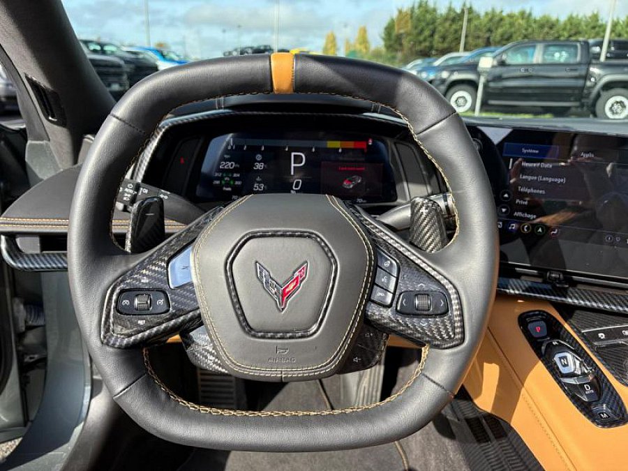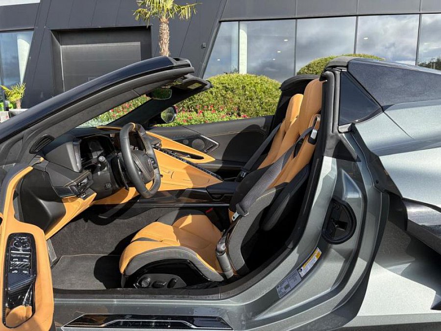 Design extérieur :Pack intérieur Stingray avec coutures contrastées Couleur intérieure personnalisée Pack d'apparence StingrayÉcussons spécifiques sur appuie-têtes Finition intérieure spécialeComposants extérieurs peints en couleur carrosserieSeuils de portes en aluminiumToit amovible peint en couleur carrosseriePlaques de seuil de porte personnaliséesRétroviseurs extérieurs couleur carrosserieÉcusson 'Corvette' Ensemble de peinture extérieure personnaliséeÉléments de garniture noirsÉclairage d'accueil au sol avec logo CorvetteLogo spécifique sur capot Confort intérieur :Siège conducteur à réglage électrique 8 directionsSièges chauffantsSièges ventilésSièges GTConsole centrale avec accoudoirGarniture intérieure Jet BlackGarnitures de portières premiumVolant chauffantSièges avant ventilésSièges avant chauffantsVolant sport gainé de cuirColonne de direction gainée cuirÉclairage d'ambiance intérieurChargeur sans fil pour smartphoneMiroirs extérieurs chauffants avec mémoireRétroviseur intérieur électrochromeRétroviseur extérieur électrochromeSystème de mémorisation conducteurTechnologie et divertissement :Climatisation automatique bi-zoneCommandes audio au volantTableau de bord personnaliséSystème multimédia Chevrolet Infotainment 3 Premium avec navigationSystème de son Bose Performance Series à 14 haut-parleursAntenne radio intégréeAffichage tête hauteSystème audio Chevrolet Premium avec écran 8'Système de freinage automatique d'urgence Alerte de collision frontale Ouvre-porte de garage universelCaméra de rétroviseurCaméra de vision avantCaméra de reculCaméras HD Vision SurroundFiltre à particules pour l'air de l'habitacleÉclairage intérieur LEDFilet de rangement dans le coffreSécurité et assistance à la conduite :Ceintures de sécurité 3 pointsAirbags frontaux conducteur et passagerAirbags latéraux thorax et bassinAirbags gonflablesFreins Brembo avec étriers peintsFreins haute performanceFreins Brembo peints en rougeColonne de direction à réglage électriqueDirection à assistance variableAlerte d'angle mortAlerte de circulation transversale arrièreAvertisseur de changement de voieCapteurs de stationnement arrièreCaméra de recul HDCaméra frontaleCrochet de remorquage avantRefroidisseur moteur haute capacité Pack Performance Z51 Suspension sport avec amortisseurs à calibrage fermeDifférentiel arrière électronique à glissement limitéTransmission automatique à double embrayageTransmission automatique 8 rapports DCTMoteur V8 6.2L LT2Rapport de pont arrière spécifiqueRefroidissement différentiel renforcéContrôle électronique de stabilité