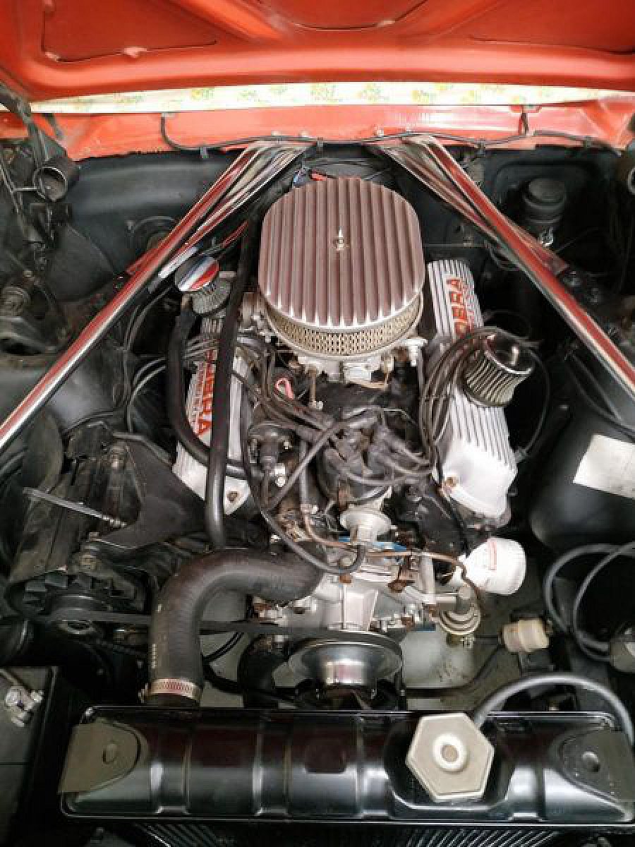 Code D, V8, 289 Ci, 210 CV, 4,7l, BA, CG de collection, CT du 11/09/2025 RAS, rouge, intérieur rouge, capote électrique blanche, couvre capote blanc.