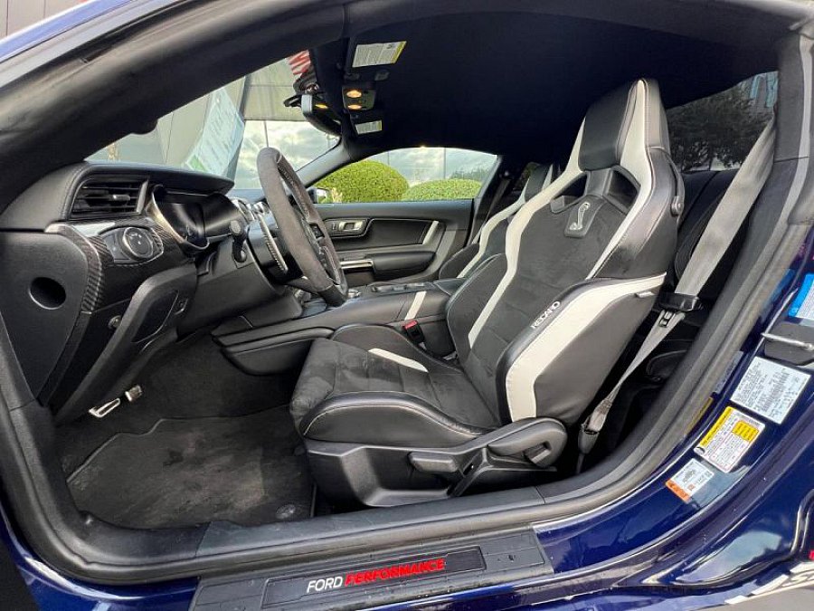 / Air conditionné / Climatisation automatique bizone / Démarrage à distance / Direction assistée / Entrée sans clé / Fermeture centralisée / Porte gobelets / Régulateur de vitesse / Sièges bacquet manuels RECARO cuir/alcantara (option incluse) / Volant cuir / Vitres électriques / Volant Ajustable / ABS / Airbag Conducteur / Airbag Passager / Alarme / Direction électronique / Electronic Line lock / ESP / Freins BREMBO 6 pistons avant et arrière / Frein à main électronique / Feux automatiques / Régulateur de vitesse / Suspensions arrières indépendantes / Track apps / Android Auto / Apple carplay / Autoradio CD / Bluetooth / Caméra de recul / Ecran 12 pouces digital entre les compteurs / Ecran tactile 8 pouces / Pack technology (sono Bang & Olufsen, détecteur d'angle mort, rétroviseurs chauffants à mémoire) / option incluse / Sono Bang & Olufsen 12 HP / SYNC 3 / USB x2 / 9 Hauts parleurs / Aileron / Boite de vitesse automatique à double embrayage TREMEC robotisée 7 rapports avec palettes au volant / Carbon fiber package (intérieur avec éléments carbone) / Double échappement à valve électronique avec 4 sorties / Jantes 20 pouces / Pédalier alu / Pont arrière à glissement limité TORSEN 3.73 / Rétroviseurs électriques / Suspensions arrières indépendantes MagneRideMalus à prévoir à la charge de l'acheteur de 18600EUR