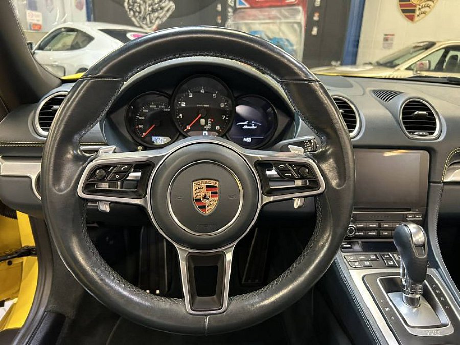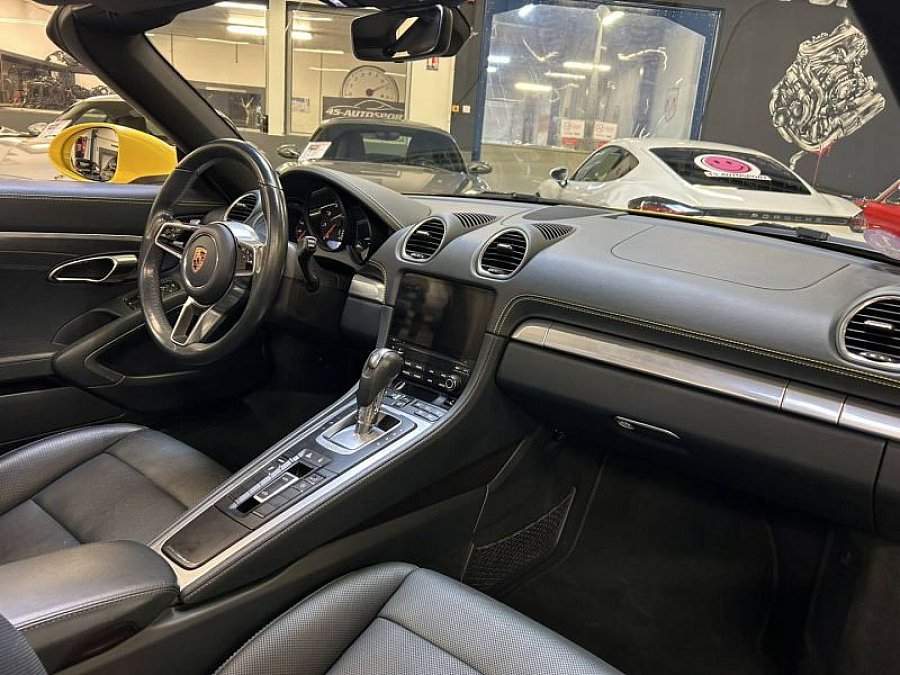 EQUIPEMENTS => Porte gobelet - Aide au stationnement à l'avant et à l'arrière - Bluetooth - Gps tactile avec map - Climatisation manuelle - Sièges chauffants et ventilés - Pommeau de levier de vitesse en cuir - Verrouillage centralisé - Système start / stop - Mode sport - Allume cigare - Fond de compteur noir - Essuie glace automatique - Allumage automatique des feux - Frein à main électrique - Volant en cuir, avec surpiqûre, palettes et chauffant - Tapis de sol porsche - Rétroviseurs électriques et rabattables - Vitres électriques - Panneau de porte & tableau de bord en cuir bleu foncé avec surpiqûre jaune - Capote électrique bleu foncé - Jantes boxster s 19 p -