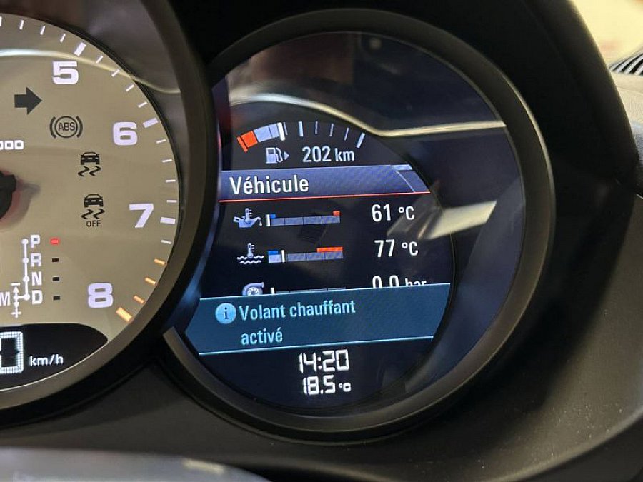 EQUIPEMENTS => Pack chrono sport plus - Caméra de recul - Aide au stationnement à l'avant et à l'arrière - Bluetooth - Radio - Gps tactile avec map - Climatisation automatique - Pommeau de levier de vitesse en cuir - Verrouillage centralisé - Suspension dynamique du moteur padm - Suspension réglable pasm - Echappement sport à valve pse - Système start / stop - Surpiqûre blanche casquette tableau de bord - Fond de compteur blanc carrare - Essuie glace automatique - Régulateur de vitesse adaptatif - Allumage automatique des feux - Frein à main électrique - Mode de conduire normal, individual, sport & sport plus - Volant sport, en cuir avec surpiqûre, multifonctions, avec palettes et chauffant - Tapis de sol porsche - Sièges sport, chauffants et ventilés - Système audio bose - Rétroviseurs électriques et rabattables - Vitres électriques - Insert de porte en aluminium brossé - Cuir étendu - Sortie d'échappement sport en noir - Carte main libre - Sortie d'air en noir - Système lave phare - Feux bi xénon et éclairage en courbe dynamique - Enjoliveur concave avec écusson de couleur - jantes carrera s 20 p finition satinée noir mat - Etriers de frein rouge -